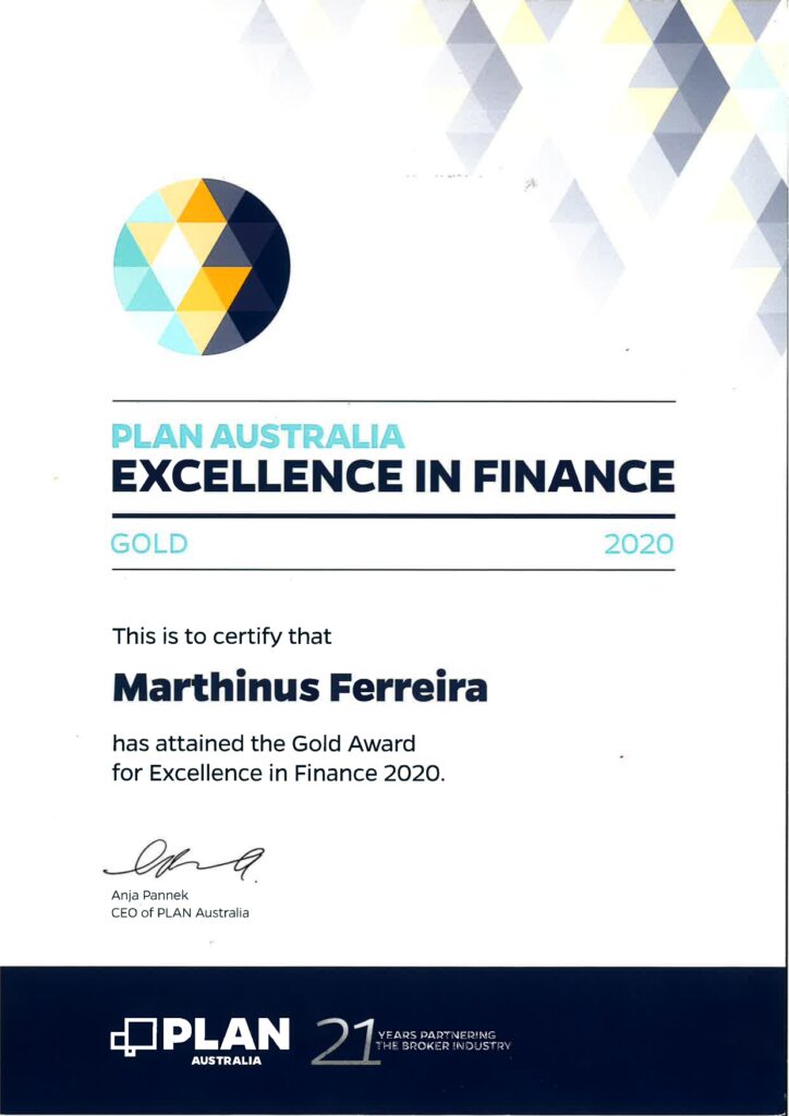 We are proud to celebrate Martin Ferreira’s achievement of the Gold Award for Excellence in Finance 2020, presented by PLAN Australia.